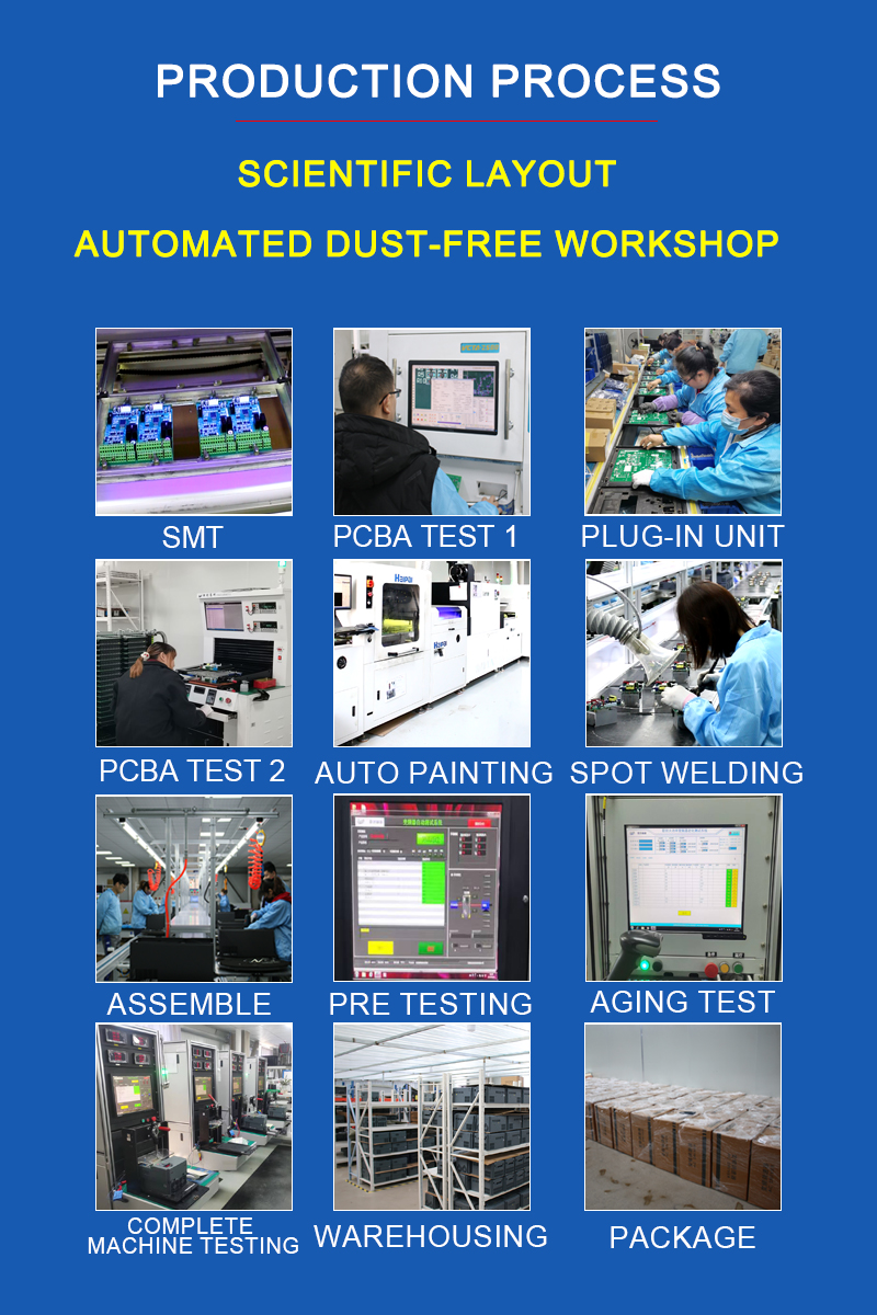 Our product details include the production instructions, usage methods, precautions and main design functions of the inverter, as well as the honorary awards of our inverter, the appearance of the factory floor.